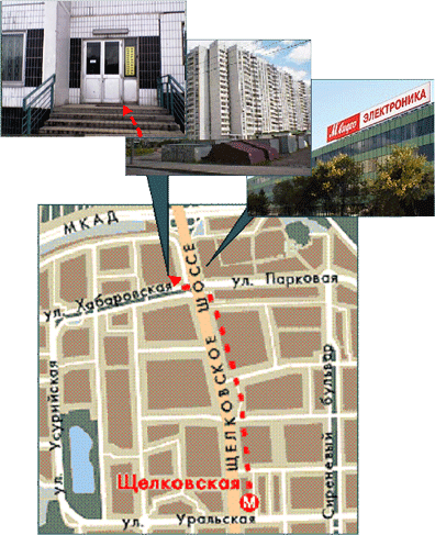 От метро "Щелковская": Выходите из метро от первого вагона из центра; Поднимаетесь вверх и в вестибюле идете направо и затем еще раз направо. Варианты проезда: Троллейбусы или маршрутные такси № 32, 41 (кроме 41ю) в сторону МКАД; Выходите на остановке "Хабаровская улица, дом 4" (шестая остановка); Прямо перед вами находится жилой дом, и вход в него подъезд с вывеской "Комиссионное оформление автомобилей". или Автобусы № 133, 716, 760 или маршрутные такси с теми же номерами в сторону МКАД; Выходите на остановке "Завод Хромотрон"; Напротив, через дорогу, располагается жилой дом, на первом этаже которого расположен магазин "Автозапчасти"; Обходите магазин с левой стороны и заходите в подъезд с вывеской "Комиссионное оформление автомобилей". Далее: Находите комнату с номером 2, рядом с ней местный телефон; Звоните по номеру 14 или 11. |